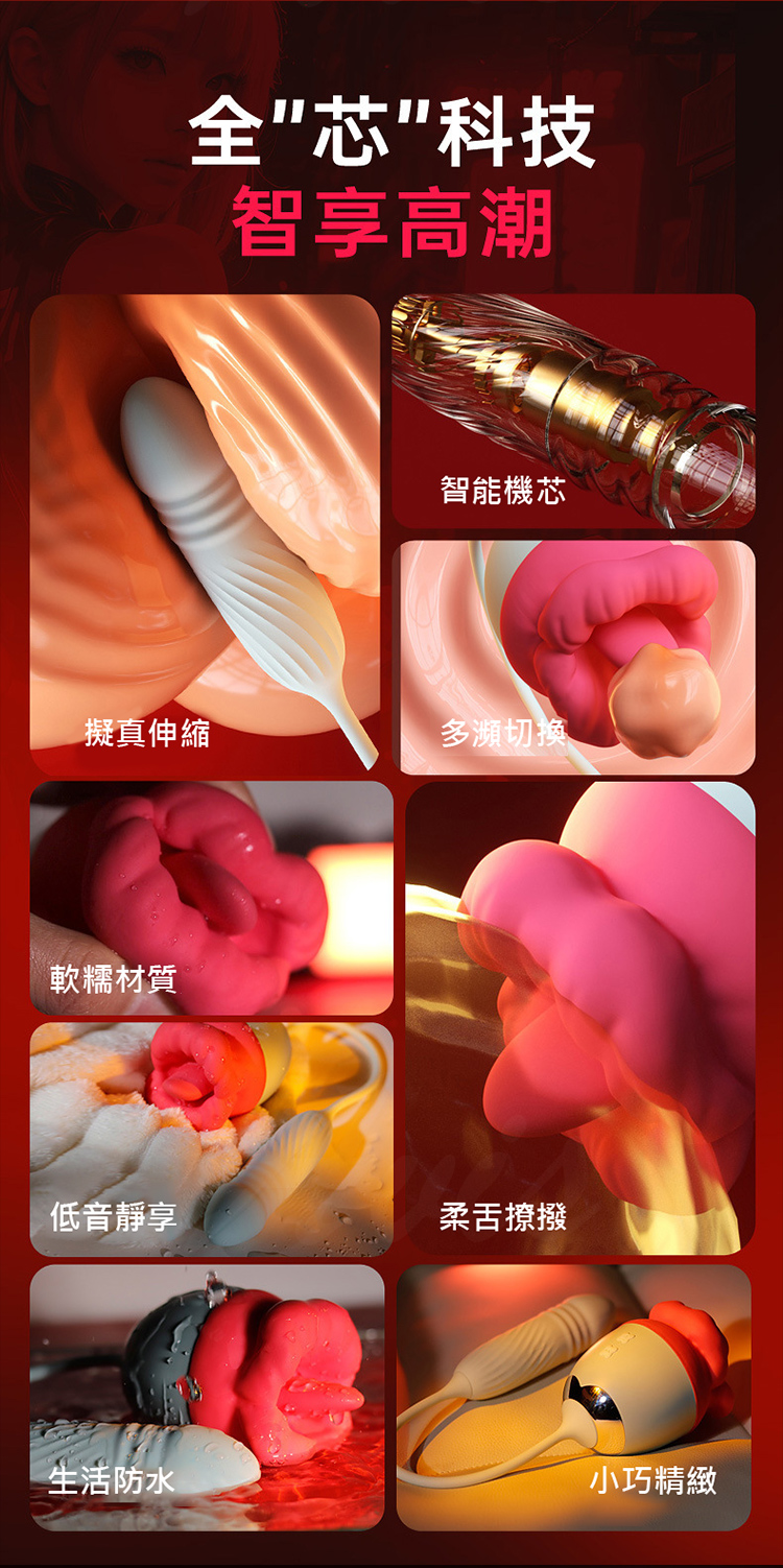 口愛花,融合舌舔+伸縮雙重快感,10頻模式任你切換,帶來極致的感官體驗,激發前所未有的高潮快感!