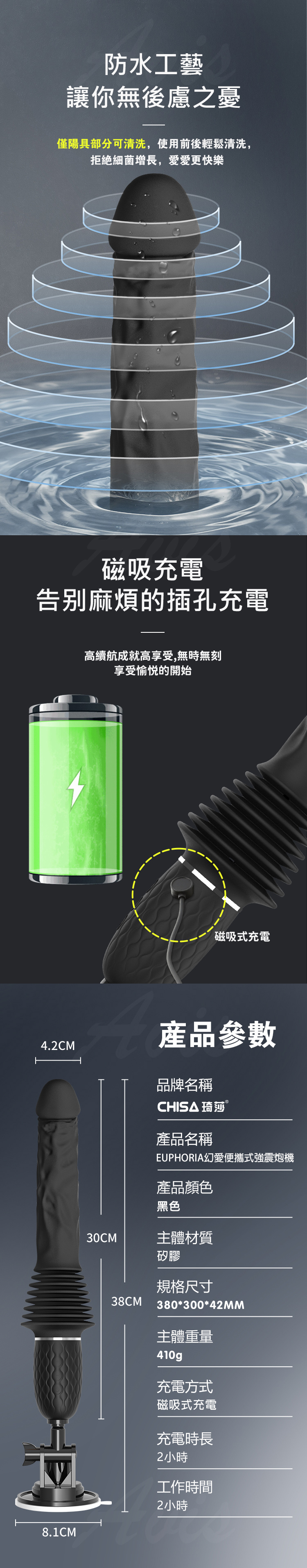 多體位適用設計,搭配旋鈕式固定與吸盤底座,不論是前後位、側躺、坐姿甚至站立,隨你怎麼玩,輕鬆駕馭快感。