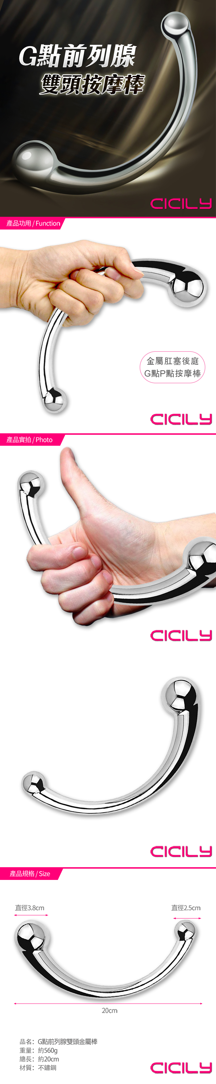 品名:C型雙頭前列腺G點後庭按摩棒|男女通用|不鏽鋼款