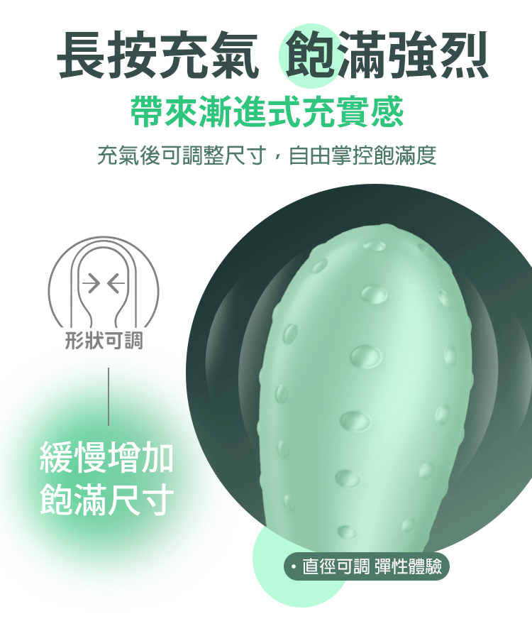 長按充氣鍵:緩慢膨脹,形狀隨妳掌控