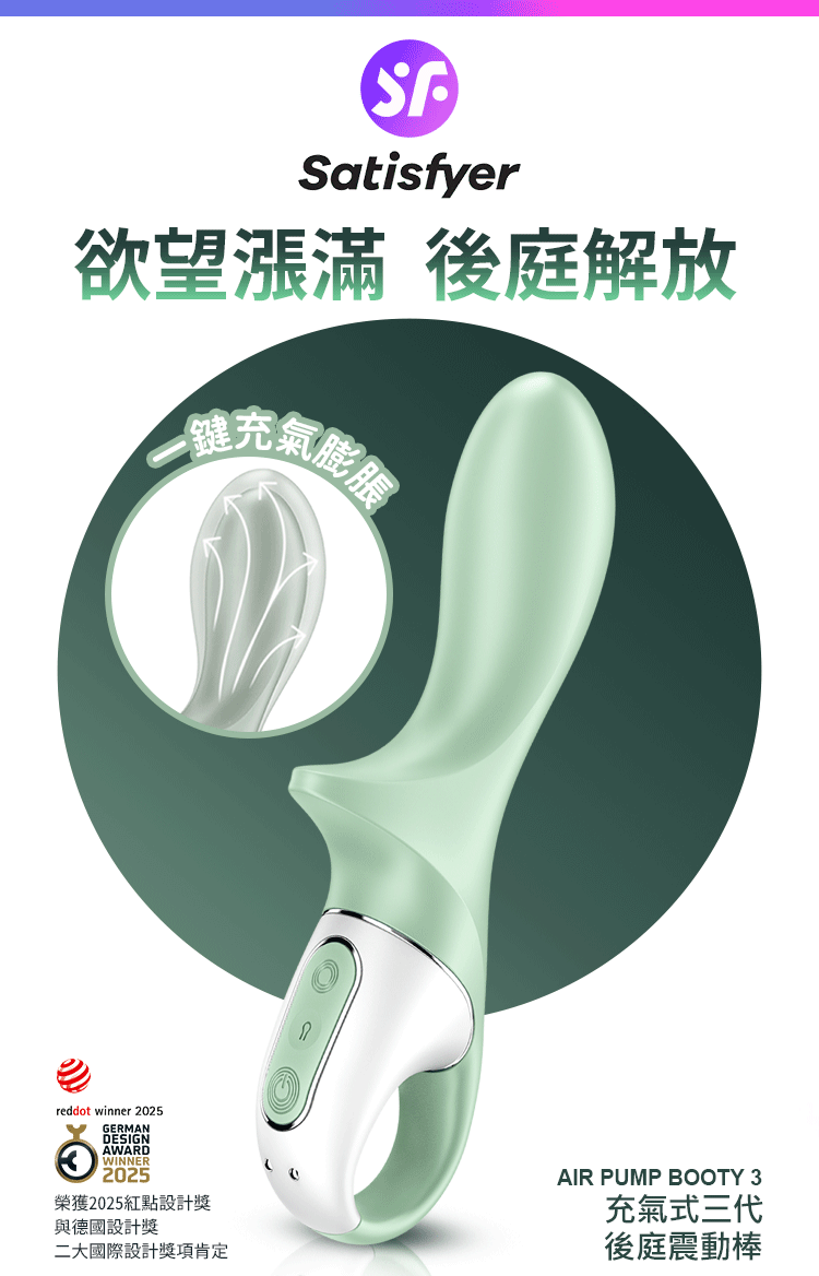 Satisfyer|Air Pump Booty 3|充氣式後庭震動按摩棒 灰綠